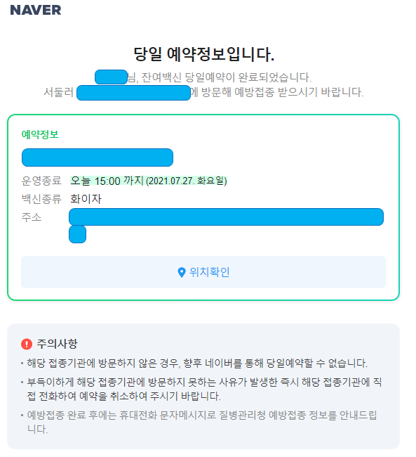 Jul 30, 2021 · 네이버로 코로나19 바이러스 우리동네 잔여 백신예약 신청 방법 3단계를 자세하게 알려드립니다.카카오톡 알림 받는 방법도 확인할 수 있으니 아래 내용을 차근차근 살펴보시기 바랍니다.